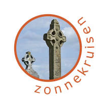 Op de kaarten (de knoppen aan de linkerkant) vind je twee soorten symbooltjes: de grijze stenen wijzen op een megalithische plek, de oranje zonnekruisen wijzen op een Iers-christelijke plek. De groene en oranje hotspots brengen je naar de respectievelijke foto-pagina’s.